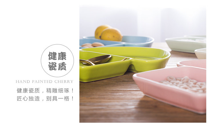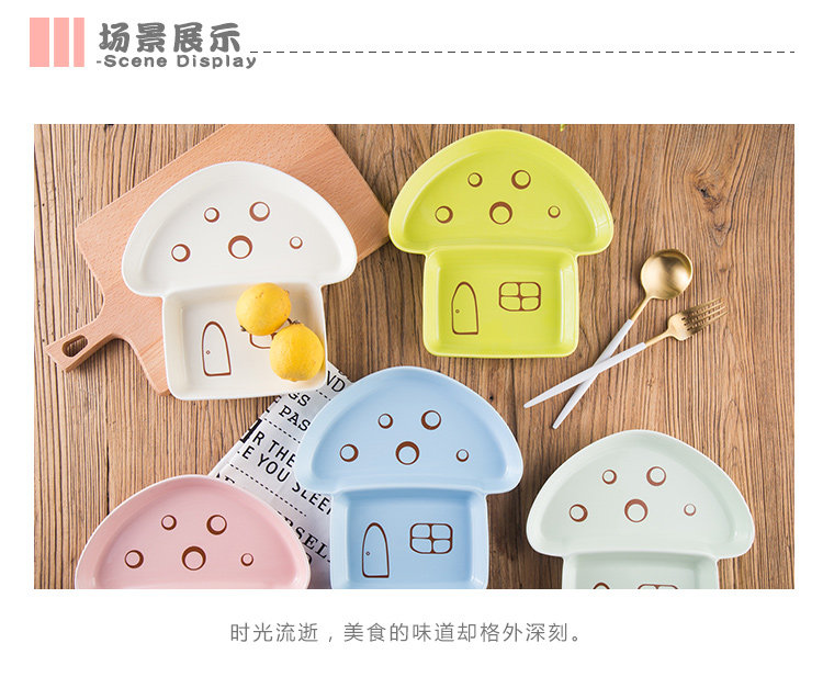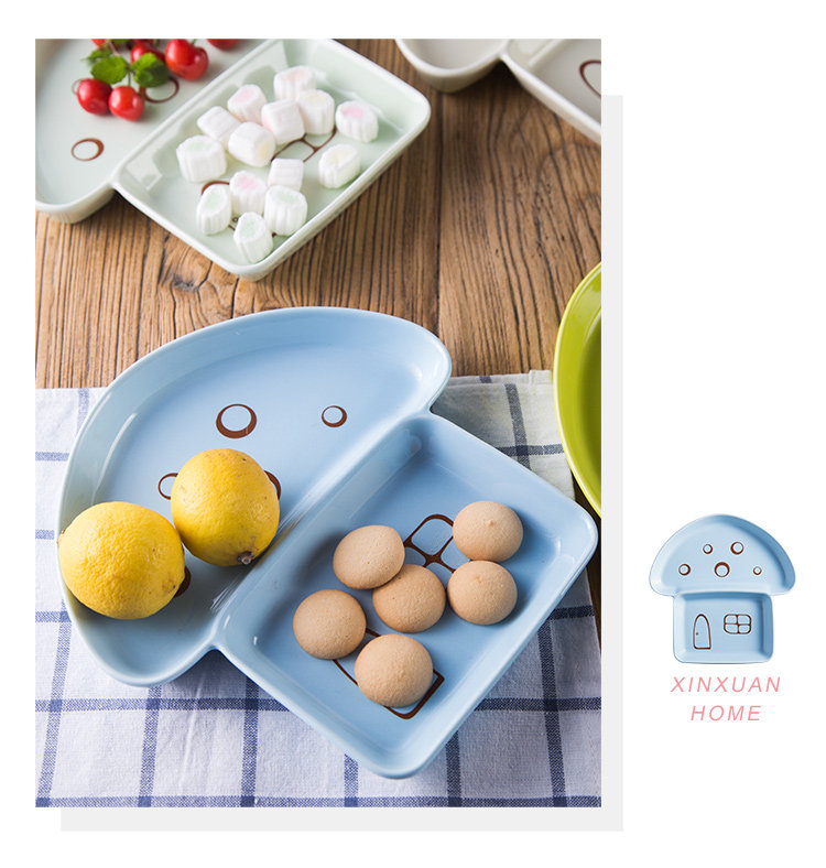 陶瓷分格盘陶瓷餐具盘子饭盘免分格蘑菇盘卡通斑点餐盘加深点心盘