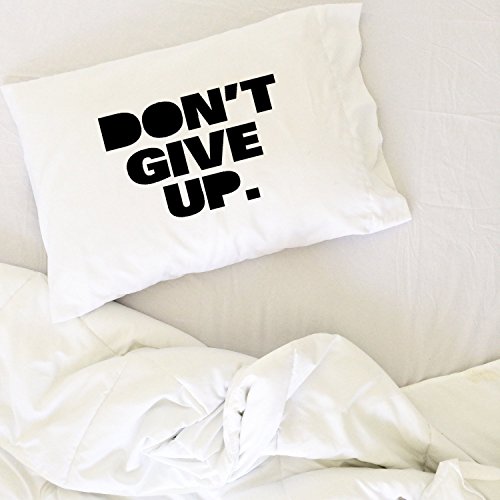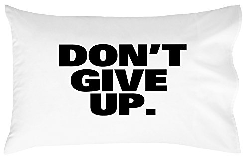 DON’T GIVE UP! One (1) 20" x 30" white pillowcase with “DON’T GIVE UP.” in BLACK text. Fits standard or queen size pillow inserts.