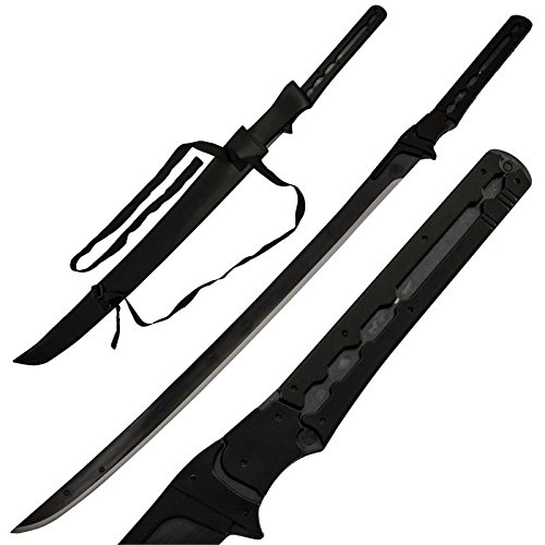 This is a replica of the High Frequency blade used by Raiden in the new Konami game: Metal Gear Rising: Revengeance. This immaculate sword is all one piece hand crafted construction from top to bottom. The Full Tang blade offers a 1045 High Carbon Steel construction with a sharp edge and mirror polish finish. Imbedded within the Katana like looking blade are metal screws as depicts in the exact replica sword carried by Raiden in the Metal Gear video game. The HF blade was used predominantly by the Cyborg Ninjas Gray Fox, Olga Gurlukovich and Raiden, though it was also employed by Solidus Snake and the Arsenal Tengu. The HF blade also saw high usage among soldiers during the 2010s, as several cybernetic bodyguards were seen using them to cut down enemy soldiers in 2018. The handle and blade is all one piece which makes this remarkable sword a Full Tang construction. The handle features ABS inserts which is held together by screws for a more Metal Gear looks and feel. This Metal Gear Raiden HF Sword comes equipped with a durable black faux leather sheath with a large belt loop and two nylon straps to go around your waist line. Here it is my Metal Gear fans, a sword you have asked for and a sword worth buying so you can feel part of the game.