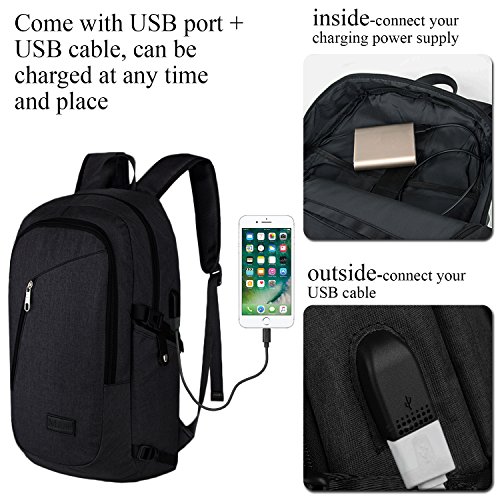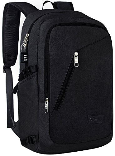 Laptop Backpack for Women & Men, Professional Slim School Bag with Combination Lock & USB Charging Port, Water Resistant Computer Back Pack Fits Notebook / Tablet UNDER 17 inch by Matein - Black