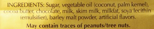 Feature : Pack of four, 5.1-ounce bags (total of 20.4-ounce) / Milk dark and white chocolates with a smooth filling / Contains Sugar, coconut oil, palm kernel oil, cocoa butter, milk ingredients etc.