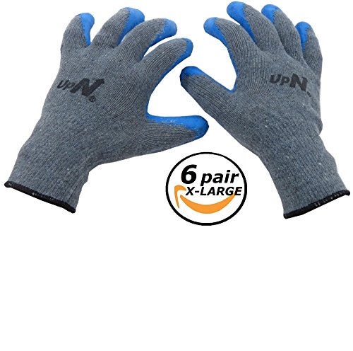UpNorth 10 Gauge Cotton Knit Work Gloves, Textured Rubber Latex Palm Dipped/Coated for Construction, 6-Pairs, Men's X-Large
