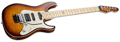 Construction:Bolt-On Scale:25.5'' Body:Alder Top:Quilted Maple Neck:Maple Fingerboard:Maple Fingerboard Radius:305mm Finish:Tea Sunburst Nut Width:42mm Nut Type:Locking Neck Contour:Thin U Frets/Type:24 XJ Hardware Color:Chrome Strap Button:Schaller Straplock Tuners:Gotoh Locking Bridge:Floyd Rose Original Neck PU:Seymour Duncan STK Middle PU:Seymour Duncan STK Bridge PU:Seymour Duncan TB-PG1 Electronics :Passive Electronics Layout:Vol/Tone/5-Way Switch Case:CST1FF Case Included:Y