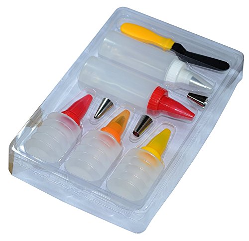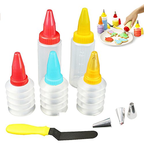 - SET OF 14 & COMPETITIVE PRICE: The package is including 5 PCS Squeeze Bottles + 5 PCS Icing Bottles + 8 PCS Stainless Steel Piping Month + 1 PCS Spatula. This integrated kit is perfect for DIY cake baking.