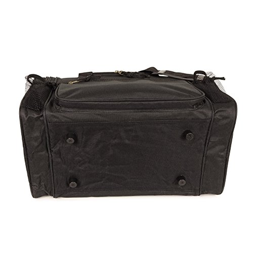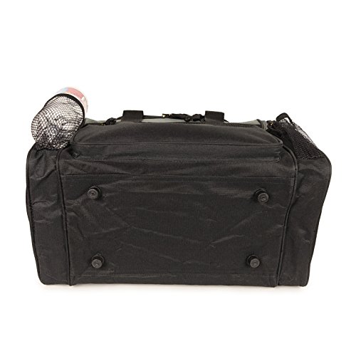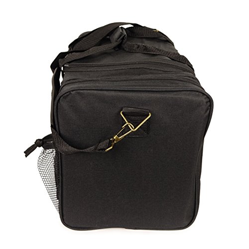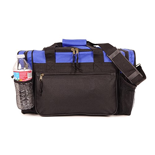 -. Feature : Material: 600D Polyester / Size: 17" x 10" x 9" / Features: Large zippered main compartment, front zippered pocket, 2 side pockets, removable shoulder strap, and 2 small mesh pockets / Intended Use: Gym, Sports, Travel, Carry-on, Camping, Hiking, Indoor/Outdoor Activities and etc... / If you're not satisfied Please contact us, 30-Days for 100% Money Back Guarantee