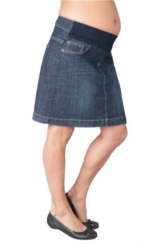 A wardrobe staple no matter what the season, this denim maternity skirt has an A-line cut to balance your hips and the same discreet front stretch band as on Seraphine's maternity jeans. The modest length transitions perfectly whether you're at home or away. Pair with a simple tank top and sandals in warm weather or layer with tights, boots and a sweater in cool weather. Machine wash, hang or lay flat to dry 98% Cotton 2% ElasthaneFeature