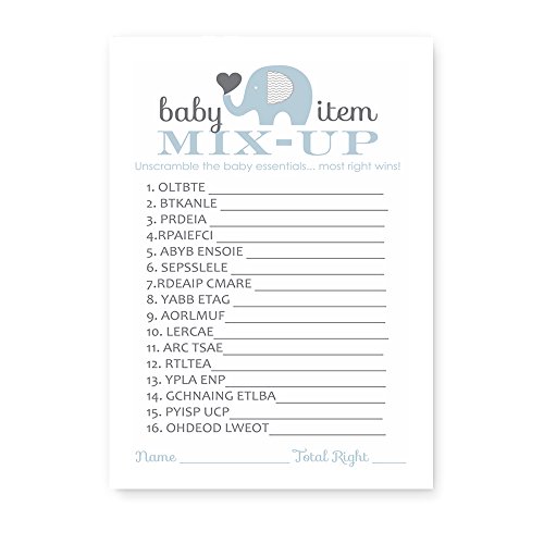 Blue Elephant Baby Shower Game Word Scramble ( 25 Pack )
