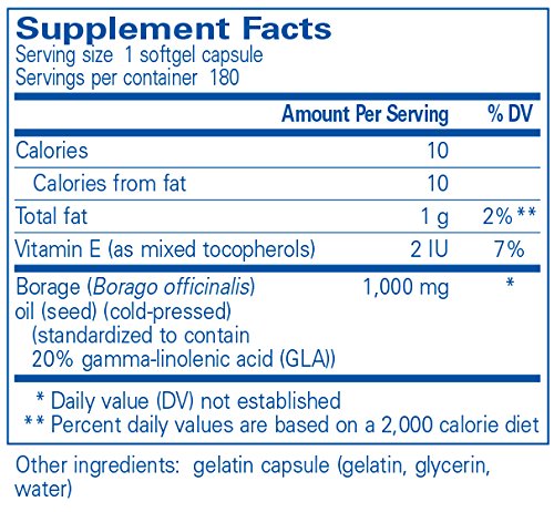 COLD-PRESSED: Contains 20% gamma linoleic acid, the highest GLA content of any plant source and cold-pressed borage oil.