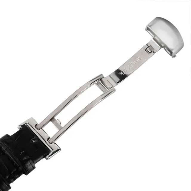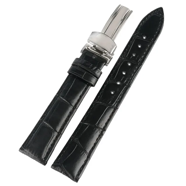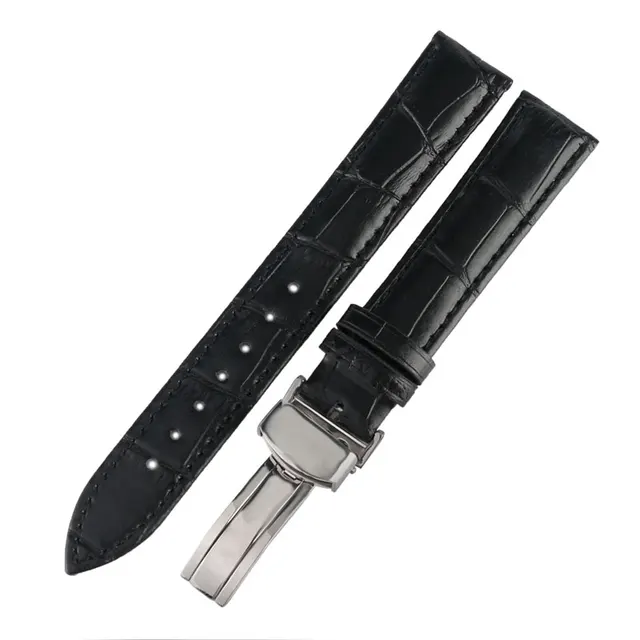 [해외] 높은 품질 18/20/22 미리메터 블랙 정품 가죽 손목 금속 팔찌 걸쇠 교체 시간 시계 + 2 봄 바