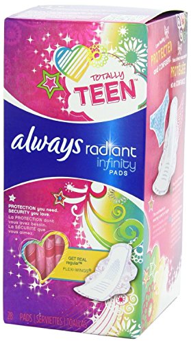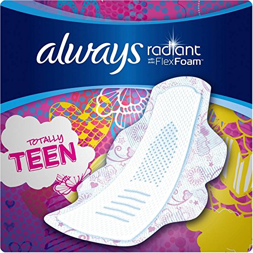 Always Radiant Totally Teen Pads With FlexFoam Flexi-Wings Flexible Wings, 28 Count, 2 Pack. (Includes 56 Pads Total.) Lasts Up To 8 Hours. Absorbs 10X...