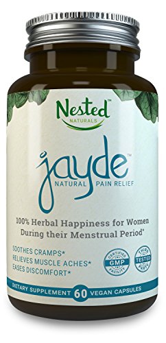 -. Feature : HELLO, WE'RE NESTED NATURALS. NICE TO MEET YOU. We're a socially conscious company destined to transform the clutter and confusion around supplements. We believe in only using the highest quality ingredients, standing behind our products, 3rd party testing every batch, and donating to charity to make the world a better place. Every product we make is designed to improve your health, happiness, and overall well-being. We love our customers and hope you'll love us too. / NATURAL PMS RELIEF: Does your period lay you low each month? We know the misery all too well: cramping, bloating, fatigue that melts your brain, irritability, tearfulness & insomnia. We turned to the best Ayurvedic wisdom when formulating Nested Naturals Jayde. It combines the extracts of three plants that preliminary research are showing to be super anti-inflammatories: Turmeric, Boswellia and Bromelain (derived from pineapple). We also add Cramp Bark to help relax the muscles. / SOOTHES CRAMPS & REDUCES BLOATING: Jayde contains Cramp Bark, a potent muscle relaxant that is gentle on the stomach. The curcuminoids in turmeric are antispasmodic - it contains more than two dozen anti-inflammatory compounds that research shows to help with relieving PMS symp. The herbs in Jayde help stop the inflammatory response that causes the body to retain water. Jayde is a natural alternative to pm medicine & over-the-counter pms cures that provides you with effective pms support. / HELPS REDUCE FATIGUE & MOOD SWINGS: Inflammation kicks the body's immune system into high gear, which is exhausting. Jayde includes a healthy dose of Turmeric, which has been shown to help with moodiness. Boswellia extract is an Ayurvedic herb that is known for relieving inflammation. Bromelain is an extract from pineapple that contains anti-inflammatory activities. Jayde combines these three herbs to help reduce inflammation in a gentle and natural pms pill. / GENTLE ON THE STOMACH: Gentle on the stomach, vegan and totally natural, Jayde is a powerful menstrual pain and discomfort reliever that you can feel happy about taking. Look no further than Jayde for a supplement that helps you take control. It's like a natural, gentle-yet potent-pms symptom treatment in pill form! If you are looking for a Turmeric Curcumin supplement without the additional menstrual anti-inflammatories, we've got you covered: check out Nested Naturals Turmeric Curcumin.