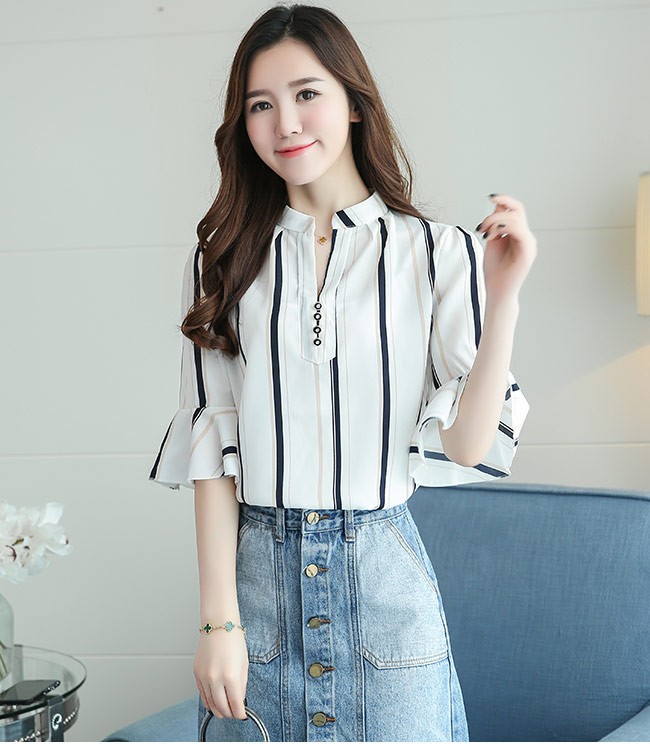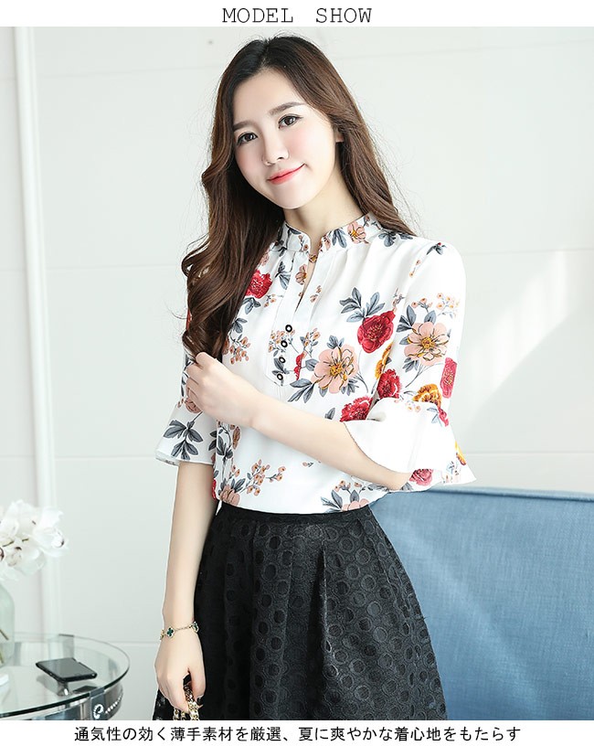 シフォンブラウス 五分丈袖 花柄 ストライプ柄 レディース 半袖シャツ Vネック ゆったり ブラウス 体型カバー 女性用 夏物 トップスレディース用の五分丈袖シフォンブラウスが登場通気性の効く薄手素材を厳選、夏に爽やかな着心地をもたらす立体的なカッティングにゆったりし過ぎずタイト過ぎずのサイズ感は美しいボディーラインを引き立てる襟部分と袖口のデザインはとても優雅な佇まいを漂わせる女性らしい花柄とスッキリとしたストライプ柄の2種類の柄があり、はっきりとしたプリントでとても上品感が出る豊かなカラバリが用意され、お好みやコーデ次第で選べるカラー:1 2 3 4 5 6 7 8 9素材 ポリエステルサイズ(cm) M L XL 2XL 3XL 4XLM バスト90 着丈61L バスト94 着丈62XL バスト98 着丈632XL バスト102 着丈633XL バスト106 着丈634XL バスト110 着丈64ご注意:※サイズは平置きサイズです。素人採寸ですので、若干の誤差がございます、ご了承ください。