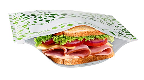 Reusable Sandwich Bags - Best Insulated Bag to Keep your Snacks and Lunch Cool & Fresh - Easy Ziploc Closure - 100% Environmental Friendly - Waterproof & Easy Cleaning | Silver Color (Pack of 5)