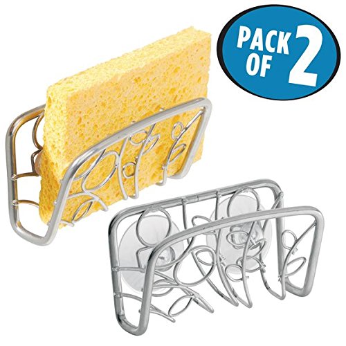 mDesign Kitchen Sink Twisting Vine Suction Cradle for Sponges, Soap - Pack of 2, Silver