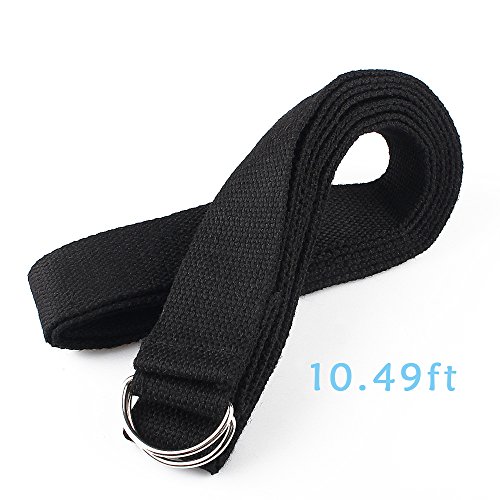 Cordking Stretching Yoga Strap,10FT Extra Long Soft Durable Cotton and Adjustable D-Ring Buckle Suitable for Holding Poses, Improving Flexibility and Physical Therapy(Black)