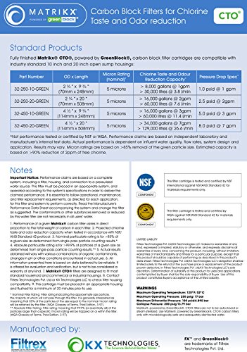 KX 32-250-20-GREEN | 20" CTO Carbon Block Water Filters for Chlorine Taste and Odor reduction | KX MatriKX Powered by GREENBLOCK | Replaces 32-250-125-20