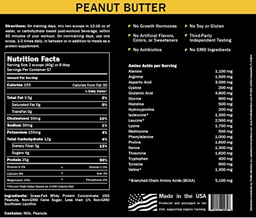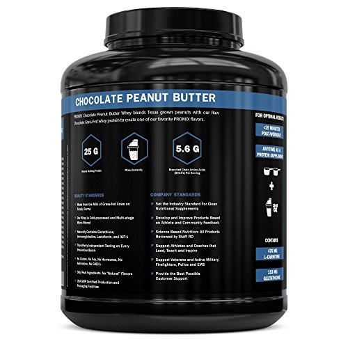 PROMIX #1 Undenatured Grass Fed Whey, Unbleached, Cold-processed, USA Farms Third Party Tested, No Preservative, Hormones, GMO's, Soy, or Gluten Look Better Naked Whey 5lb Chocolate Peanut Butter