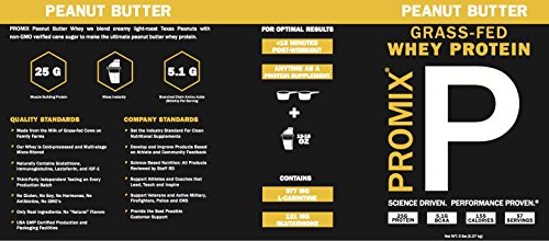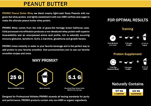 Performance Whey Protein Powder Concentrate - PROMIX Standard 100 Percent All Natural Grass Fed & Undenatured -Fitness Nutrition Shakes & Energy Smoothie Bowls:Peanut Butter 1 lb Bulk
