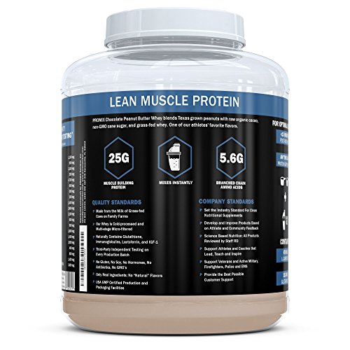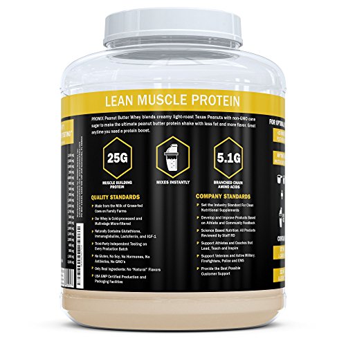 PROMIX Standard 100 Percent All Natural Grass Fed & Undenatured - Best for Optimum Fitness Nutrition Shakes & Energy Smoothie Bowls: Peanut Butter 5 lb Bulk- Look Better Naked Whey