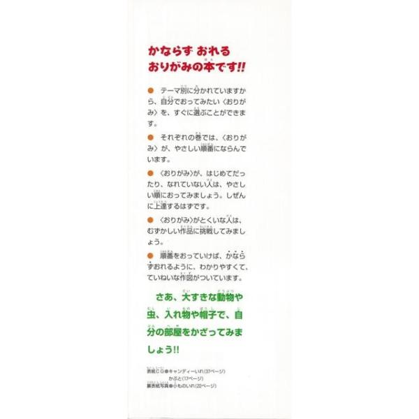 【商品説明】 定価(税込み):2,160円 値引き:10% OFF 虫かご、コップ、さいふ、かぶと、ぼうしなど24種類。やさしい順に紹介してあり、順に折っていけば、なれない人も自然に上達。 バーゲンブック 新品 特価 格安 ハンド クラフト 折り紙 塗り絵 おりがみ |
