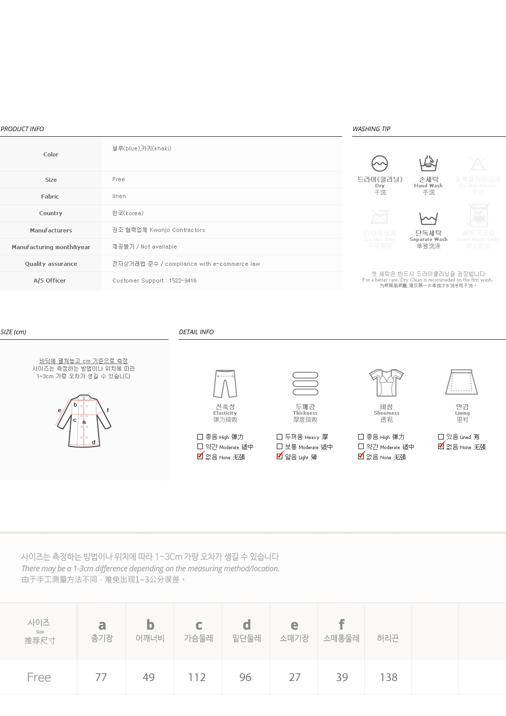 피팅 컬러와 사이즈는 카키/블루, Free 입니다