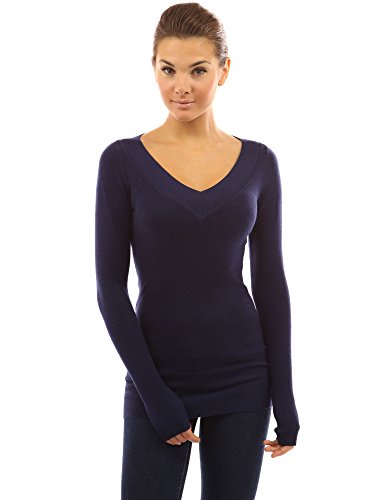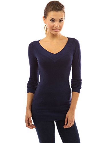 PattyBoutik V Neck Long Sleeve Knit Tunic Plain Sweater. Model in pictures is 5 feet 8 inches (173cm) tall.