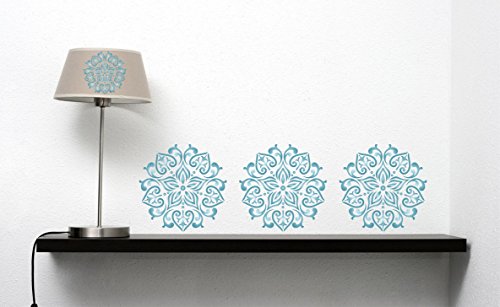 If you haven't got the stamina for a whole wall a combination of like stencils can add a bright splash of color. Large stencils make a stunning accent on an empty wall, try them near a sofa or table or even by the skirting board of pretty much any wall space that needs that extra something.