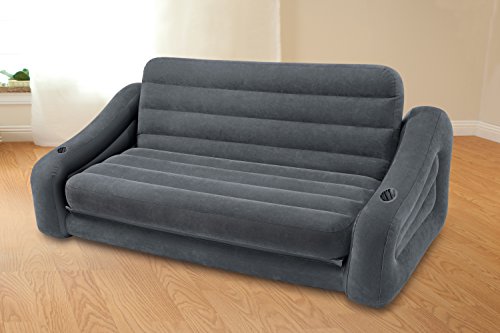 Studio : INTEX Publisher : INTEX Product Description Sofa, sleeper, futon, bed, this 2-in-1 pullout is designed for relaxing just about anywhere. The Intex Queen Inflatable Pull-Out Sofa Air Mattress is versatile and goes from an inflatable sofa with cup holders to a queen-size air mattress momentarily. This pull-out, inflatable sofa offers valves with extra-wide openings for fast inflation and deflation (air pump not included). It features waterproof flocked top surfaces that are soft to the tough and tough enough for outdoor use. With a comfortable backrest and armrest for sofa-chilling and a queen air mattress large enough to sleep 2 people, this 2-in-1 design is efficient and convenient for your needs. Watch a movie, take a nap in your tent, or just relax and read a magazine, the Intex Queen Inflatable Pull-Out Sofa Air Mattress is ideal for lounging around or sleeping. 0