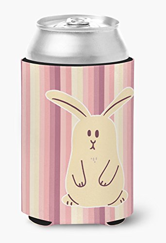 Caroline's Treasures Rabbit On Stripes Can or Bottle Hugger, Can Hugger, Multicolor