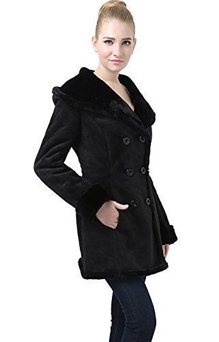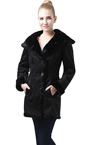 Ultra-soft, supple faux suede shearling; Double breasted button closure front