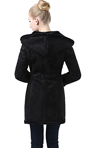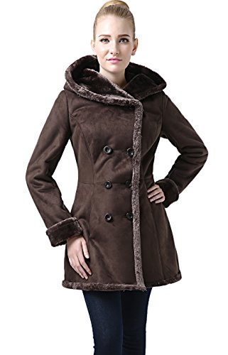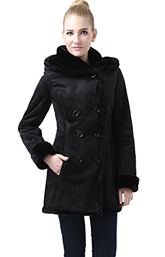 Keep warm with this soft faux shearling coat. It features a faux fur trimmed hood, placket, cuffs, and hem.