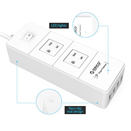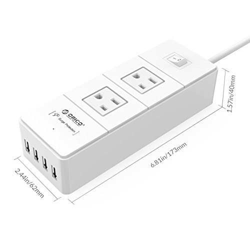 ORICO Traveling 1250W 2 Outlet Surge Protector Power Strip with 20W 4 Ports USB Charger for iPhone 7/7 plus, iPad Air 2/Mini 4, Samsung Galaxy S6/S6 Edge/Note 5, HTC, Nexus and More