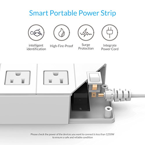 Lightweight and compact design, this power strip is easy to carry or neatly placed on desk, it is your ideal solution for power supply
