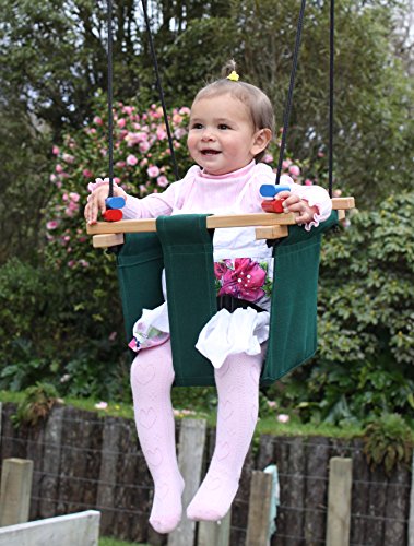 Baby KEA Swing, Forest Green Indoor or Outdoor Wood, Rope, Canvas Swing For Baby and Toddler 6-36 Months