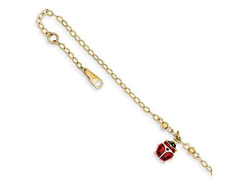 -. Title : 10 Inch 14k Adjustable Enameled Ladybug Anklet