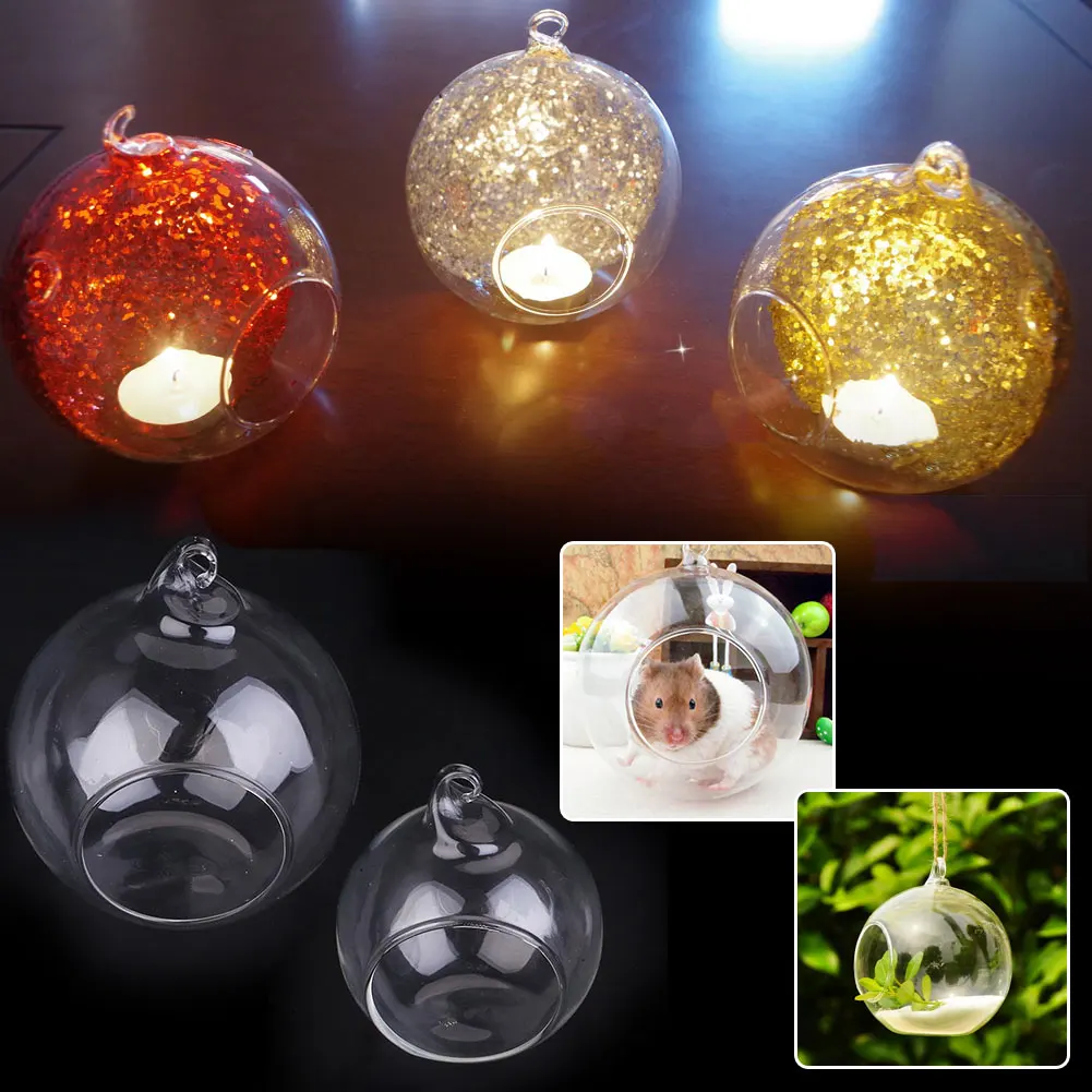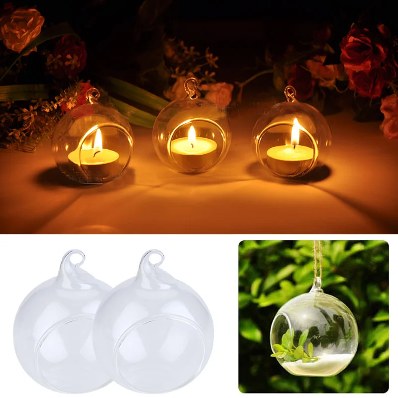 Specifications:Color: White transparentSize: 60mm, 80mmMaterial: High borosilicate glassProduct size: Diameter 6CM high 7CM (60mm), Diameter 8CM high 9CM (80mm)Package:1 x Hang Candle Holder