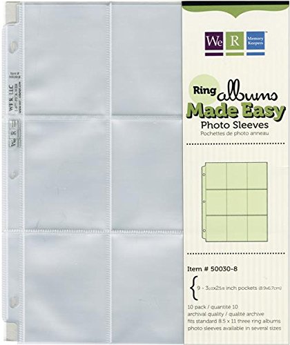 Easily store your photos in We R Memory Keepers 3 - Ring Album Photo Sleeve Protectors. These sheet protectors are made from the highest quality materials, So you can be sure they will last a long time. They are made from extra thick material and they are ultra-clear so you can easily see your photos without any glare. Each sheet protector has reinforced edges to protect your photos and to ensure the photos do not stick to the page. Create a personalized scrapbook by mixing and matching each sheet protector style.