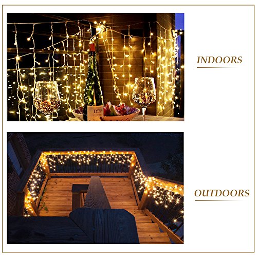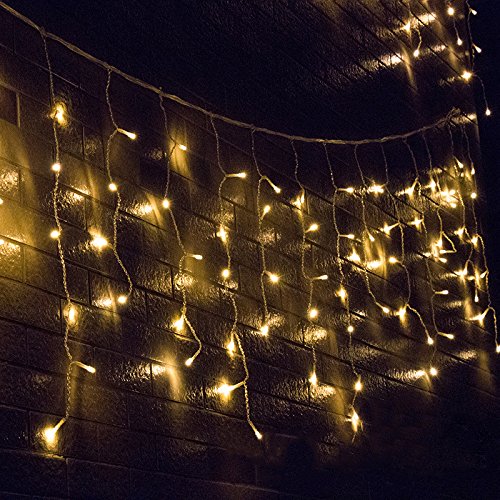- [Perfect Design] 13.12ft*1.96ft, 144 warm white LED lights. The curtain light has 24 lines. Per line with 6 LEDs. UL Certificated Output and wire: 31V Voltage Safe Curtain Lights with UL certified, leads to 31V safe output by UL plug-in transformer.