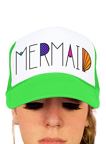 Product DescriptionRock this bright Mermaid trucker hat in black text and rainbow colored scale accents during your next trip to the beach!0