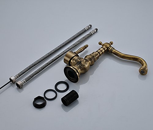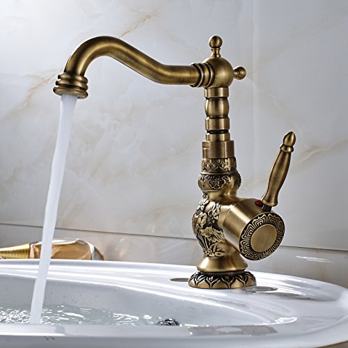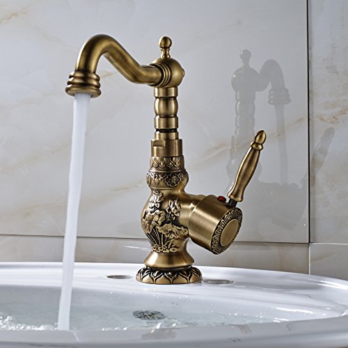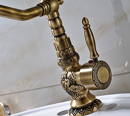 -. Brand : Rozin -. Feature : Factory Direct sales,Delivery within 7-10 days / Cold and hot water / Overall Height:22.5m(8.8"); Spout Height:17cm(6.7"); Spout Reach:20.5cm(8") / Swivel Spout Single Hole Deck Mounted -. ProductGroup : Home Improvement -. ProductTypeName : PLUMBING_FIXTURE -. Title : Rozin Classical Art Carved Swivel Spout Bathroom Sink Faucet Single Hole Deck Mount Basin Mixer Tap Antique Brass