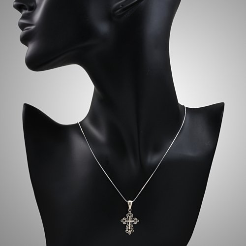 -. Feature : Lightweight and beautiful / Pendant Size: 1.8 cm x 3.2 cm. Silver chain length 18'' / 925 Sterling Silver / Packaging: Black Velvet Pouch / More cross jewelry available in Chuvora store. Please search Amazon for "Chuvora Cross"