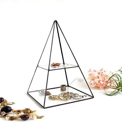 -. Title : MonkeyJack 2 Tiers Clear Pyramid Glass Jewelry Trinket Box Display Holder Storage Organizer