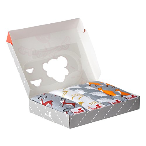 Design: Animal patterns on a white and grey background (giraffe , fox , hedgehog , stag )