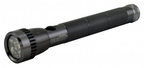 Studio : GreatLite Publisher : GreatLite Binding : Tools Home Improvement Product Description Item 32855: GreatLITE 9 LED Aluminum Flashlight 2AA Size. Heavy duty aluminum handle. Triple knurled grip for security. 9 High Intensity LEDs put out up to 60 Lumens. Case is shock proof and water resistant. Includes belt holster and 2 AA batteries. 0