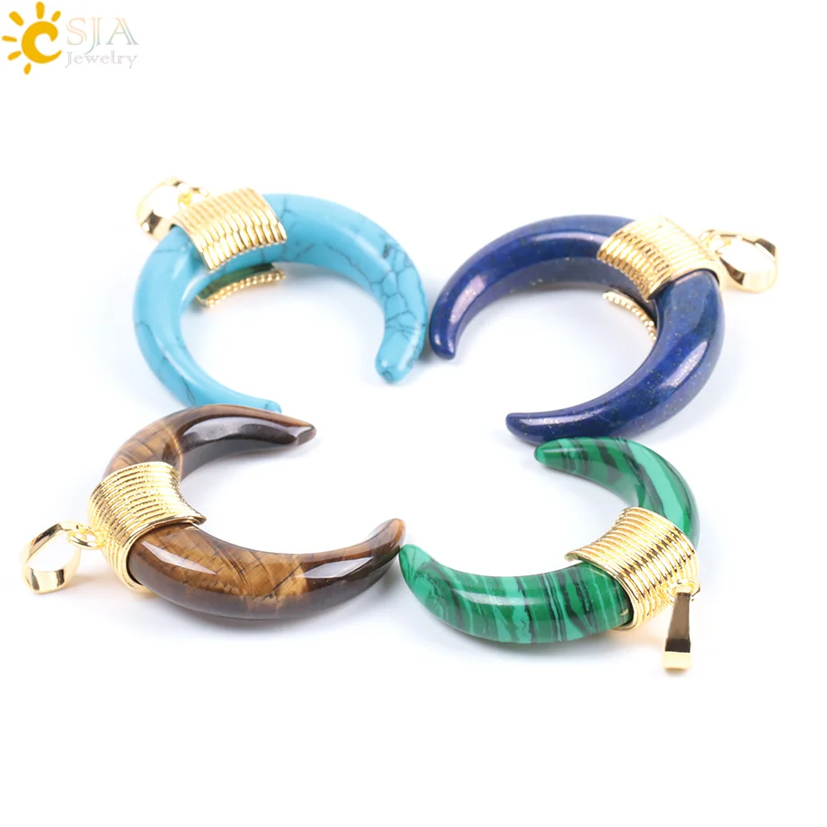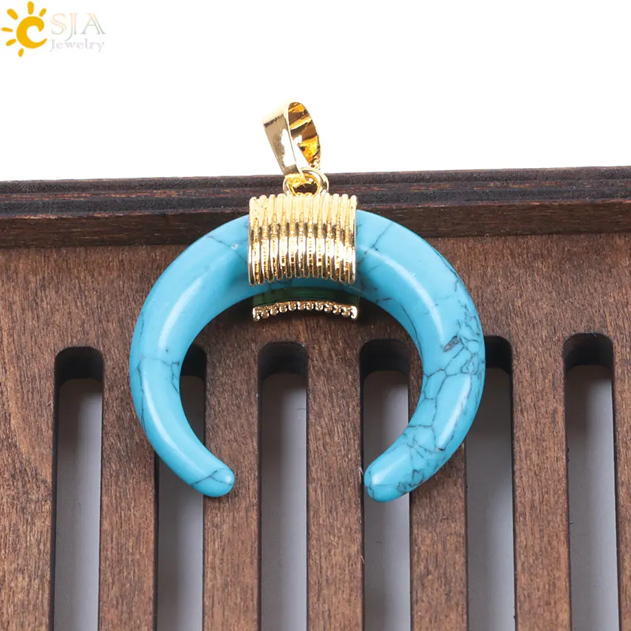 Product Feature:Double Horn Half Moon Shape + Gold Color Wire Wrapped + Only Pendant