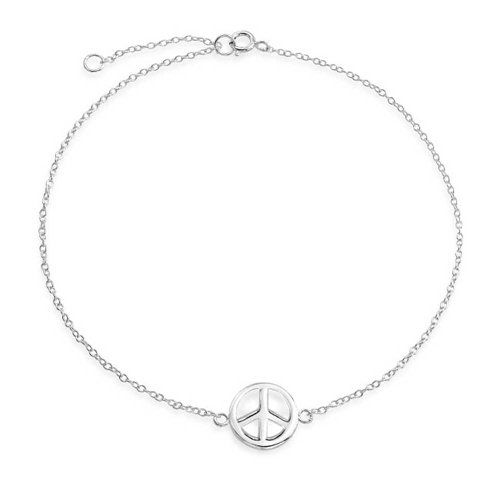 -. Title : Bling Jewelry Sterling Silver Mini Peace Sign Adjustable Ankle Bracelet