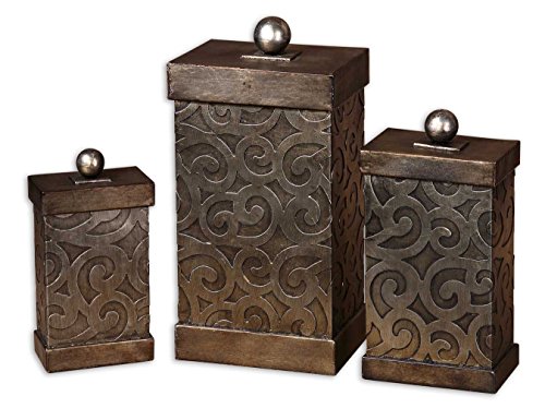 Uttermost Nera Metal Decorative Boxes in Antique Silver (Set of 3)
