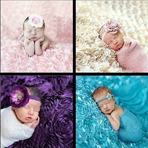 NFT Baby Photography Props Newborn 3D Rose Flower Photography Photo Backdrop Blanket Rug (White)