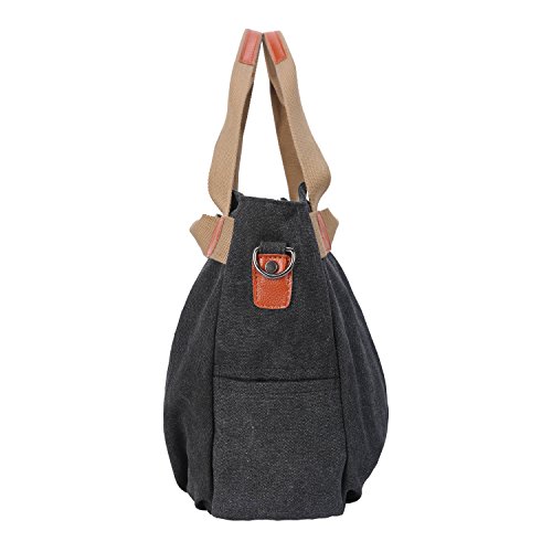 Size: 12.99*7.87*9.84inches (L*W*H); Handle: 7.87inch. you can put Notebooks, umbrella, iPad, bottle, mobile phone and other things in it. Roomy pockets of the ladies canvas bags can meet you demands.
