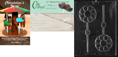 Cybrtrayd 'Round Disc Flower Lolly' Kids Chocolate Candy Mold with 25 4.5-Inch Lollipop Sticks and Chocolatier's Guide